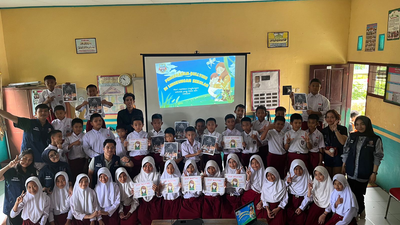 “Besar harapan kami, sekolah ini dapat menjadi contoh bagi sekolah lain untuk memperhatikan lingkungan sosial peserta didik, sebab hal ini berdampak pada kondisi psikis anak yang berpengaruh bagi tumbuh kembang anak nantinya, selain daripada membahas segi kesehatan mental anak juga kami memberikan edukasi hukum bagi para peserta didik guna mengetahui akibat hukum jika terjadi peristiwa bullying, “Tutup mahasiswa KKN -Muhammad Axchel Ar.